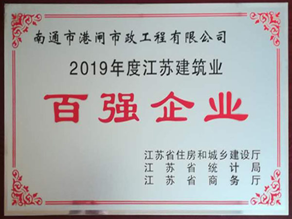 2019年度江蘇建筑業(yè)百強(qiáng)企業(yè)